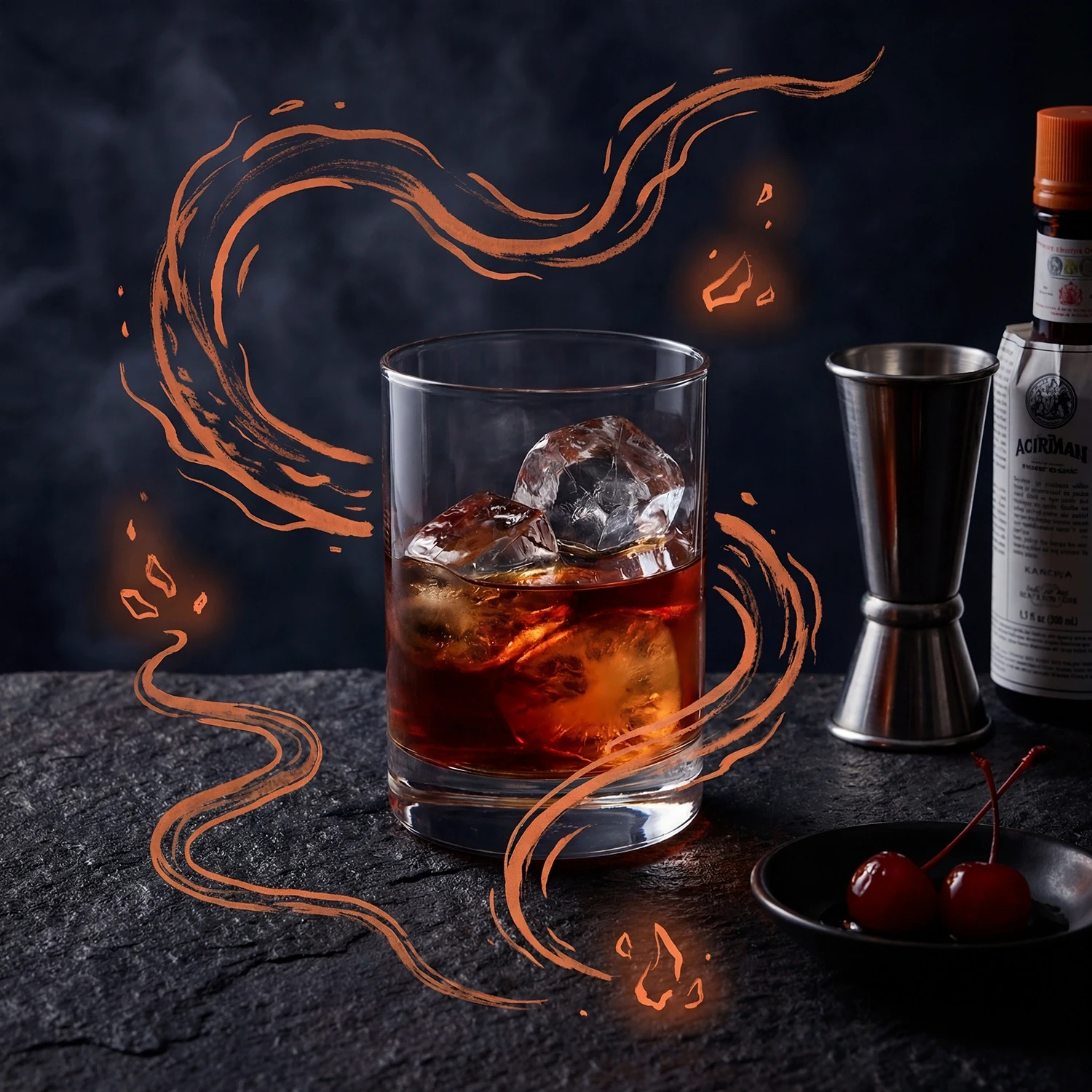 The Rob Roy is built on structure. Vermouth softens, bitters sharpen, and smoke gives the drink its depth. With Smoking Dragon, it becomes darker, more composed, and more atmospheric. A serve with quiet force and lasting character.